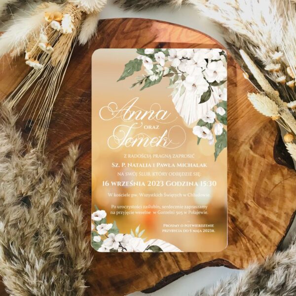 Transparentne Akrylowe Zaproszenie Elegant Boho